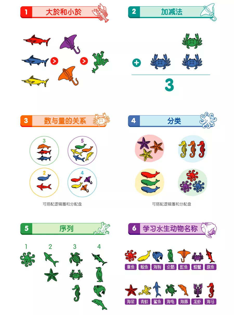 ✔ 孩子可以培养触觉和认知能力,观察水生动物身上的特征和纹路,并通过抓取的动作来训练手眼协调。