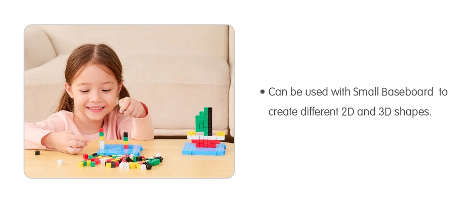 1 gm Linking Cubes are each 1 cubic cm and weigh 1gm, making them the perfect tools to teach length, area, volume and weight. By connecting the cubes, the child can develop hand-eye coordination and hand muscles. Children can also use the cubes to understand basic math, such as addition, subtraction, multiplication and division. Together with a balance scale or a base board, the cubes can be used as weights, and to create different 2D and 3D shapes.