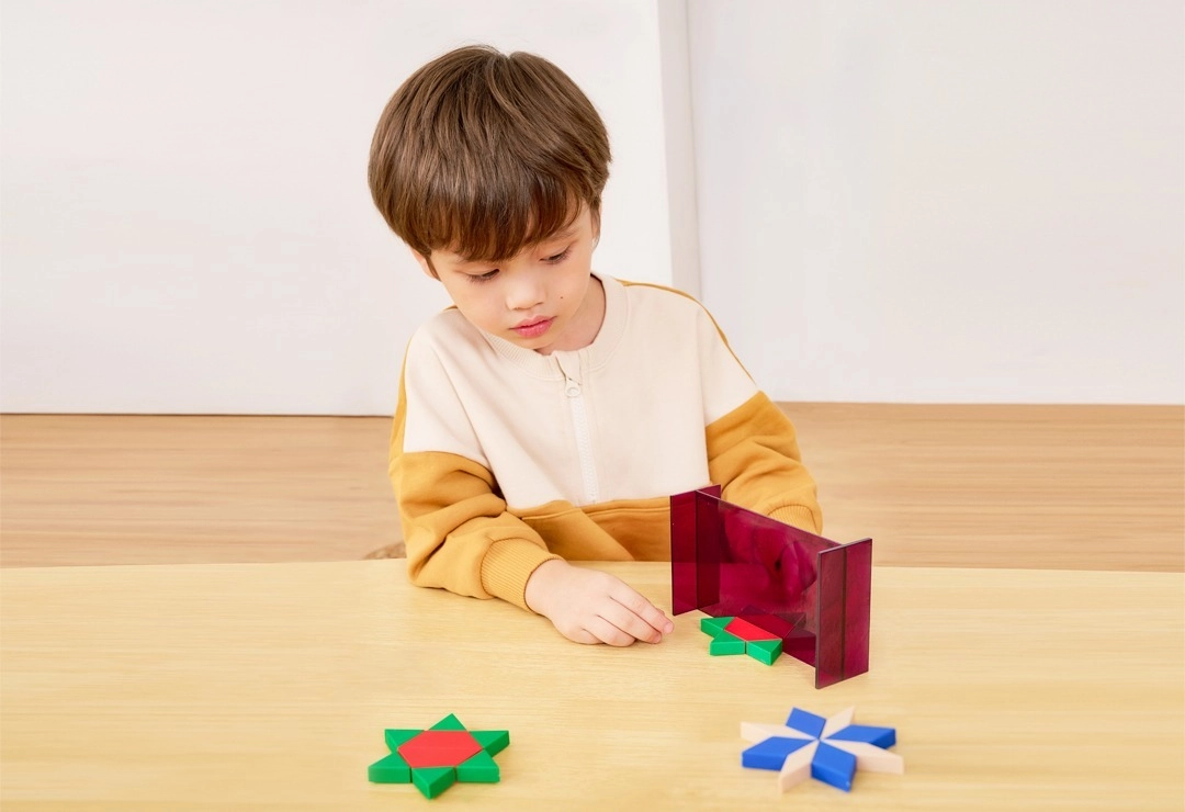 Geo Mirror is an excellent tool for demonstrating concepts in geometry, such as line reflections, transformations and congruence, and it is also durable, transparent and freestanding. Children can use Geo Mirror to trace lines, angles, bisectors and shapes. Through hands-on practice and exploration, the child can also develop focus, logical thinking, and observational skills, as well as an understanding of geometry.